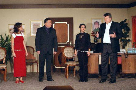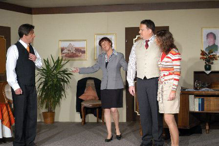 Am 01.07.2005 hatte Bundeskanzler Gerhard Schröder im Bundestag die Vertrauensfrage gestellt und keine Mehrheit erhalten, sodas Neuwahlen erforderlich wurden, die sich schon nach der Wahlniederlage der SPD in Nordrhein-Westfalen abgezeichnet hatten. Zu diesem Zeitpunkt war unsere Entscheidung schon längst gefallen, im Oktober das Lustspiel „Der Wahlkrampf“ von Wilfried Reinehr auf die Bühne zu bringen. Allerdings erhielt unser Stück durch die Bundestagswahl, die am 18.09.2005 stattfand, eine ungeahnte Aktualität. Die Proben fanden ganz überwiegend in der heißen Phase des Wahlk(r)ampfs statt.